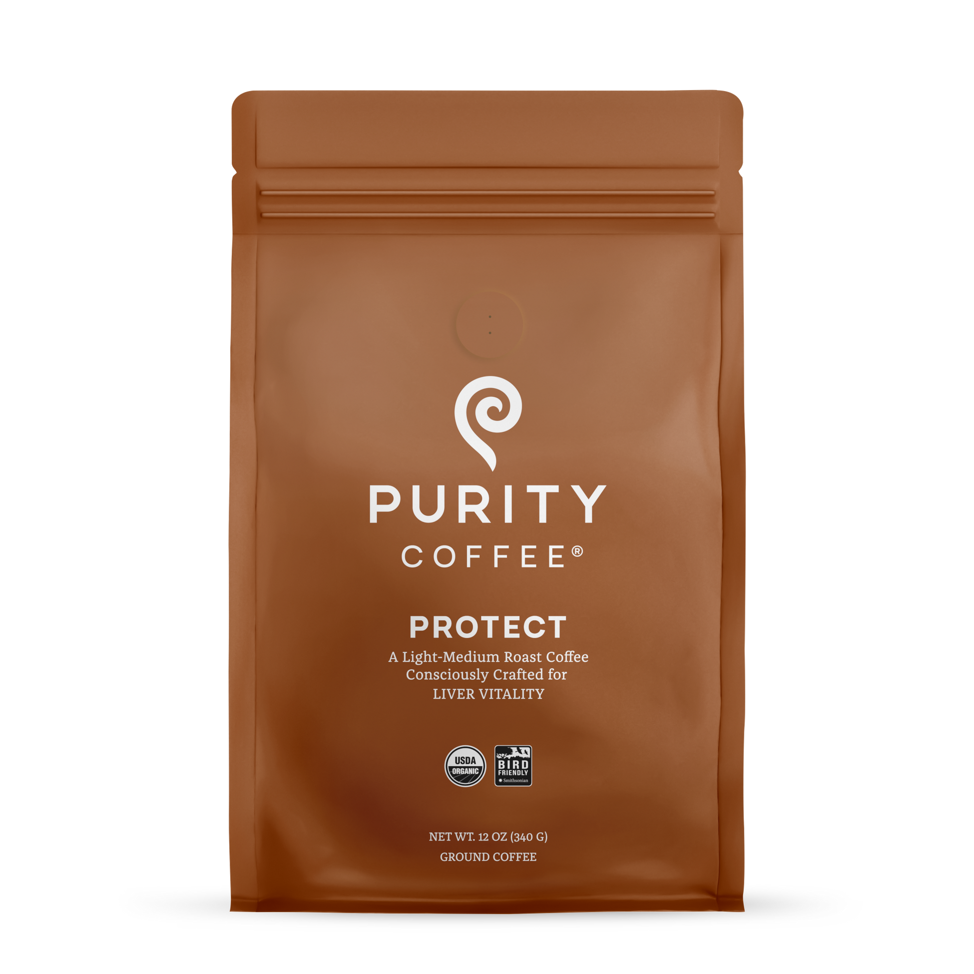 Our light-medium roasted coffee with sweet citrus characteristics, sourced and roasted specifically for liver care, metabolic vitality and the highest level of antioxidant activity. PROTECT contains more CGA than any of our coffees.